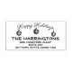 Den här designen har julprydnader som hänger från Glad helg Typografi. Fyll i fält med din information. Anpassa texten, ta bort text eller redigera med verktyg i designen om du vill markera ett teckensnitt stil, storlek och färg.