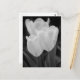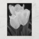 En närbild med tre tulpaner, konverterad till svart och vitt.