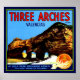 Tre valv Valencia Apelsiner Fruktlåsetikett Affisch