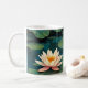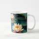 Tre rosa- och vita vattendjor och dynor i art nouveau stil skapar ett vackert mugg som är perfekt för alla som kärlek blommor och naturen.