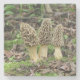 Tre vildmorelchampinjoner i skogen underlägg sten