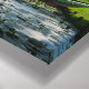 Canvas landskap är utskrivet av tre vindkraftverk längs en kanal med båtar och regn under en blå himmel med puffa moln som skapar en fredlig scen på den nederländska landsbygden i Leidschendam i Nederländerna.