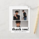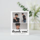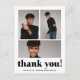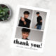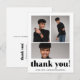 Det moderna svarta och vita studenten-tack som du har med vykort har stor typografi med tre foton på framsidan och ett enkelt tack som du skickar med returadress på baksidan.