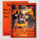 Önskar Halloween fest inbjudan med 3 karikatyrer gamla häxor i svart omrörning över en kaldron på en loggbrand med rök och lågor. Höst löv på marken och på scenen ligger vid ett träd med stor koffert. Svart, orange och gult färg. En mus kryper längs grund i teckning. En gammal tjock häxa som står vid brand och två andra häxor är smala. En stor svart fågel som var på gren ovanför tittar ner på scenen. Text Happy halloween och grund: "Kom och Gå med häxorna party". Omgivande är en gräns av katter på en Halloween-pumpad pumpa. Gräns i inbjudan är en mönster i svarta katter på Halloween-pumpor. Baksidan av inbjudan är blanksteg som du kan fylla i din information och i Costume. En gammal smala häxa i svart och pekade på svart hatt och breda brimkorn på dig. All teckning som utförs av Patricia Villa med artisternas märkpennor.