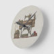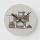 Treadle Sewing Maskin & Kittens Rund Klocka