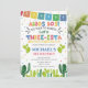 Ta med fiesta till din lilla enes stora dag med denna roliga Three-esta-födelsedagsinbjudan! Perfekt för en 3-års födelsedagsfest full av tacos, musik och färg. Denna redigerbara mall har en lekfull mexikanskinspirerad design, livfulla färger och festliga illustrationer som sätter tonen för en glad fest.