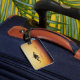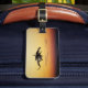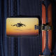 Framsidan av bagagetaggen visningar en digital målning av en man som kör en drake genom himmel under solnedgången, med en skattkista. På baksidan av bagagetaggen ska kontaktinformationen tryckas på den. Du kan göra detta genom att klicka på "Anpassa den!".