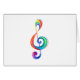 Musical nyckel, på vit bakgrund, ritad från ett flerfärgat lagrar av regnbåge färg.
