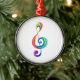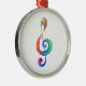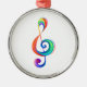 Musical nyckel, på vit bakgrund, ritad från ett flerfärgat lagrar av regnbåge färg.
