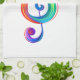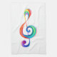 Musical nyckel, på vit bakgrund, ritad från ett flerfärgat lagrar av regnbåge färg.