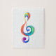 Musical nyckel, på vit bakgrund, ritad från ett flerfärgat lagrar av regnbåge färg.