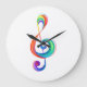 Musical nyckel, på vit bakgrund, ritad från ett flerfärgat lagrar av regnbåge färg.