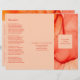 Elegantens trefaldiga broschyr med modern och abstrakt röd och orange bakgrund.