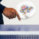 Guld, smycken, treble clef dekorerad med delikat, artificiellt målat rosa ros med fladderande blå fjärilar.