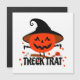 Fira Halloween på ett kusligt sätt med denna Treck Trat-pumpakonst som visar en super söt pumpa med en yxa och en spöke. Konsten bär en hatt, vilket ger en mystisk look till den spöklika figuren.