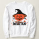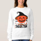 Fira Halloween på ett spookiserat sätt med den här Pumpkin Treck Trat-teckningen med en söt toppen-pumpor med en daggaxel och ett spöke. Artwork har en hatt, vilket gör att man ser mystiskt ut i det gigantiska figur.