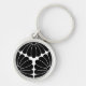 Tredelade krysantemum rund silverfärgad nyckelring