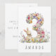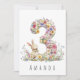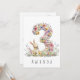 Gör en lillas 3-årsdag extra speciell med detta charmiga kort, med en delikat akvarellillustration av siffran 3, vackert utformad av små, färgglada pastellfärgade blommor. En söt kanin står bredvid siffran och nosar lekfullt på blommorna, vilket ger en touch av sötma och glädje till designen. Oavsett om du är förälder, farföräldrar eller familjevän, kommer detta förtrollande kort säkert att ge en glad stund åt både den lilla och deras nära och kära.