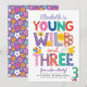 Tredje födelsedagsinbjudan, regnbåge, ung vild och tre inbjudan