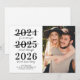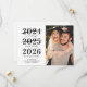 Roligt kort att spara datumet med ett foto av dig och din partner, talesättet '2020 första försöket, 2021 andra försöket, 2022 tredje gången gillt', era namn, datum och platsen för er framtida bröllop.