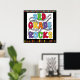 Färgstark och svart bakgrund med roligt som färgstark design för kant, musik noter och multifärgad som lyder "tredje Klass Sten" på tredje klassrummet i klass poster att läraren kommer att kärlek!