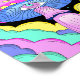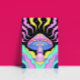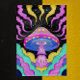 Den här sjudande bilden visar ett mycket stiliserat och psykologiskt svamprum som dess centrala fokus. Svampan har en stark rosa med gulter och en framträdande "tredje öga"-design mitt i dess blå undersida. Snurrande, färgstarka moln i skuggor av rosa, gult och turkos runt svamprummet, mot bakgrund av mörken, spräckt med små, glödande stjärnor. Den totala estetiska bilden är vismisk, mystisk och påminner djupt om den psykodeliska konsten.