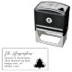Return address reusable ink stamp. Black tree design with script and printed fonts used. Include a total of five lines as needed.