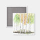 "A charming watercolor illustration of serene trees captured on a magnet. Soft, flowing brushstrokes create a peaceful woodland scene, with gentle greens and subtle earthy tones. Perfect for adding a touch of nature-inspired beauty to your fridge, locker, or workspace."