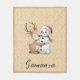 Tree pattern reindeer snowman orange beige name fleecefilt