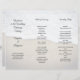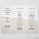 Bröllopsprogrammet kusten ska delas upp i tredjedelar. Bakgrunden är strandsand med vit surfa. Programmets framsida kan rymma första namn eller fullt namn i bruden och brudgummen. Svarta textmallar på alla tre avsnitten är lätta att anpassa med ceremoniinformation. Rubrik, namn och rubriker finns i elegantens skript. Pappra måste vikas runt stil efter köpet, och dubblan måste kontrollera all text eftersom ingen kommer att bevisa din ordalydelse. Baksidan av detta papper innehåller också bilden av kusten i havet.