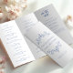 Impress dina gäster med det här eleganten dammiga, blå trefaldiga bröllopsprogrammet som ger gott om utrymme för att visa dina ceremonier, bröllopsfest och ett hjärtligt tack. Anpassadet har en delikat blommigt för rustik chic, kalligrafi för elegant och botaniska accenter, och kombinerar praktisk med sofistikering. Det skapar den som perfektens huvudtanke för din speciella dag. Observera att dessa kommer som platta pappra, du måste vika ihop dem manuellt.