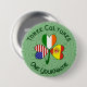 Personlig rund knappnål med den spanska flaggan, irländska flaggan och amerikanska flaggan som var och en visas i ett annat blad på denna shamrock. Ovanför står ordet TRE KULTURER. Nedanför står orden, EN DIN NAMN. Skriv in ditt namn på avsedd plats för att göra det personligt. För att skapa en skräddarsydd present, lägg till någon annans namn. Designen skapades för att hedra kulturerna i Amerikas förenta stater, Irland och Spanien. Rolig för helgdagar och speciella tillfällen. Riktigt cool för familjeåterträffar, resegrupper och klubbar.