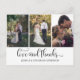 Ornera calligraphy-skript med plats för tre foton på framsidan och ett på baksidan av ett tack som du postkort. Anpassa med egen information och egna foton. Om du hellre vill använda ditt eget personliga meddelande på baksidan, ta bara bort texten.