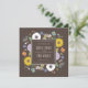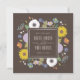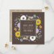 Inspirerad av blomfröpaket har detta kort för att spara datum en ram av handritade, blandade blommor.