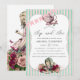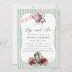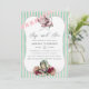 Rosé, mint, burgunder och roseguld vattenfärg blommig alice i underlandet bröllopsdusch inbjudan kan anpassas till ditt evenemang.