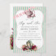 Rosafärgad, mint, burgunderröd och roséguld vattenfärg blommig alice i underlandet bröllopsfest inbjudan kan anpassas till ditt evenemang.