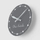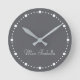 Trend Färg Slate Grått. Anpassningsbar Namn/namn är lätt att anpassa. Lägg till lite elegans i contemporaryn med chicens runda klocka i färgaden. Med delikata vita punkter för minut- och timmarkörer kan du ange ett anpassade för ditt namn i ett charmigt kalligrafiskt, handskrivet, tittar teckensnitt. Perfekt för att lägga till en stänk i färg till din hemskår. Anpassningsbar/Anpassadets hemdekoration. Enkel och ren design med solid färg för tidlös användning. Köp vår färger för höst- och vintertrenden för andra produkter med samma färg eller annan snyggt i färger.