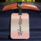 Trendig personlig lugagge märkre med en faux ro guld-bakgrund med ditt namn skrivet i ett modernt skript. Texten är helt och hållet anpassade.