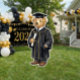 Stilfull trendig akvarellkonst av en examenstjejbjörn. Detta är en konst som är tryckt på Zazzles affisch. Du kan använda detta verk för att skapa en utskuren ståfigur för att dekorera din utomhus- eller inomhusfirande. Du kan göra det genom att beställa den tryckta affischen och när du får den, klippa ut formen och placera den på en kartong (eller liknande) form.