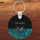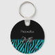 En söt och trendig zebra tryck-nyckelkedja med modern svart och teal zebra ränder och förskönad med ett tryckt gigantiskt svart band. Anpassa genom att lägga till ditt namn till den här chicen, svart och turkosa kvinnors design. Perfekt för snyggtens modeonista i vilken tonåring flicka som helst!