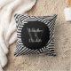Trendig Black and White Monogram Rand Bröllop Kudde