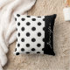 Den här chicen är alltid i stil och har svart polka dots över vit bakgrund. Ett brett band svart springa vertikalt längs en ände av designen med en textmall för anpassning med ditt namn, monogram eller annan önskad text. Den här kudden är ett underbart val för ett sovrum, sovrum eller annat utrymme som du vill anpassa med ditt unika stil. Finns i 2 storlekar: 16 tum och 20 tum kvadrat samt 2 olika tygtyper; polyester eller bomull.