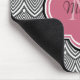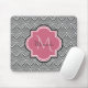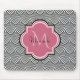 Ett trendig svart konsthantverk med deka-bågscallop mönster mousepad med en mörk rosa quatrefoil-bricka som du kan anpassa genom att enkelt lägga till ditt eget monogram och namn. Detta är en del av Black Scallops Rapture Ro Monogram Vår-samlingen.