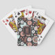 Spelkorten är dekorerade med en koral, mynta grönt och vit blomma mönster mot svart bakgrund. Designad av Blackberry Boulevard.