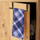 En kökshandduk med ett vackert diagonalt plaid mönster-design i marinblått.