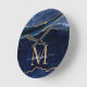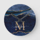 Trendig Blått Guld-agate Geode Glitter monogram Rund Klocka