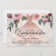 Modern blommigt Quinceañera-inbjudan. Utformning med ro guld, blommigt inslag på en ljusa pärlbakgrund. Anpassa med uppgifter om party i trendiget.