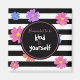 Snyggtens dekorativa utformning med blommor i pastellskuggor på en svart och genomskinlig vågrät med stripe bakgrund. Texten är helt och hållet anpassade. Om du vill ändra användan anpassar du den. Om du vill ha fler ändringar, t.ex. ändringar i teckensnitt, teckensnitt färg eller textlayout, användor du alternativet Anpassa.