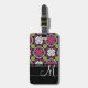 Trendig Blommönster Shock rosa och Black Monogram Bagagebricka