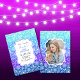 Trendig Blue Mint Rand Blommigt Fotofödelsedag Inbjudningar